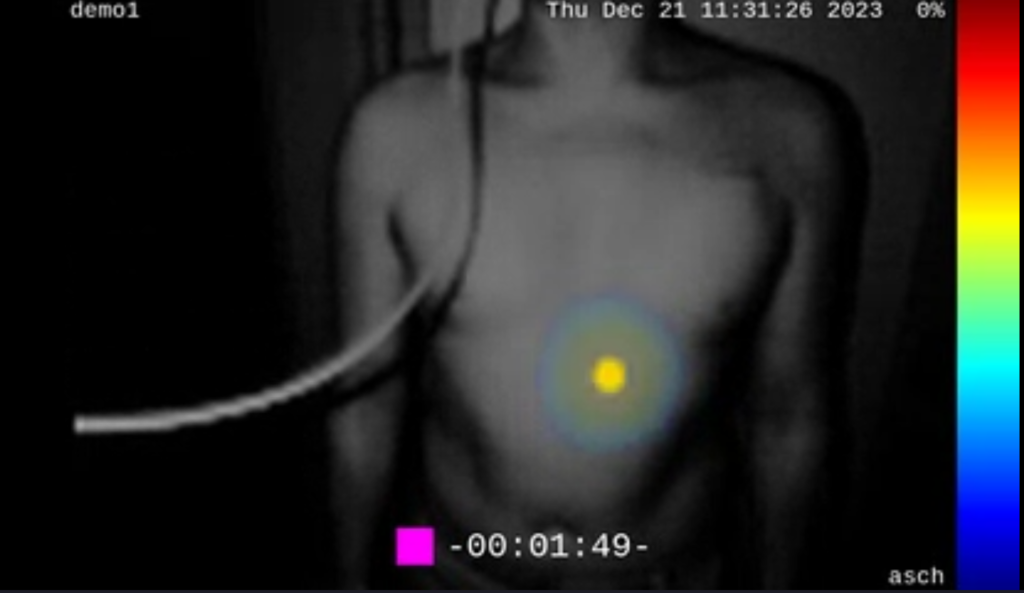 栄養チューブ内に先端が光るスタイレットを挿入し、チューブが胃内にあることを体外からカメラで確認する医療機器です。