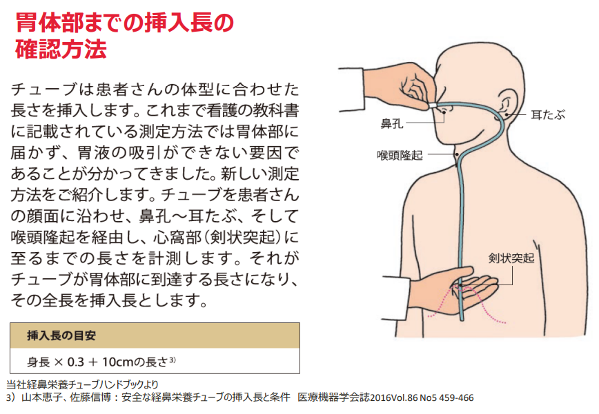 胃体部にドレーン用の側孔が留置されるように、挿入する必要があります。