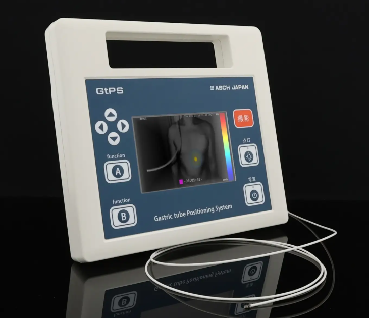 経腸栄養チューブの留置を非接触で素早く確認 小型・軽量のため、ベッドサイドで操作…